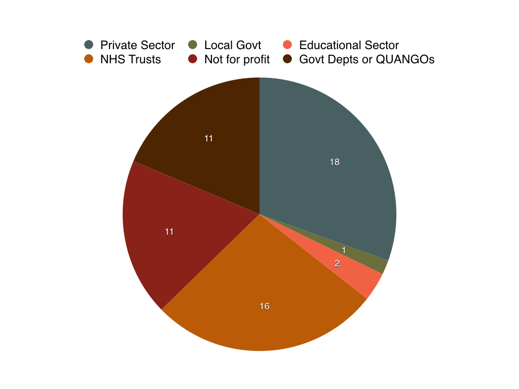 They are also a surprising mixture of statutory, private, and voluntary sectors. The 60 signatories break down as follows: