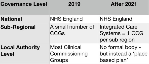 In simple terms I think the current and future governance of the local health system is a bit like this: