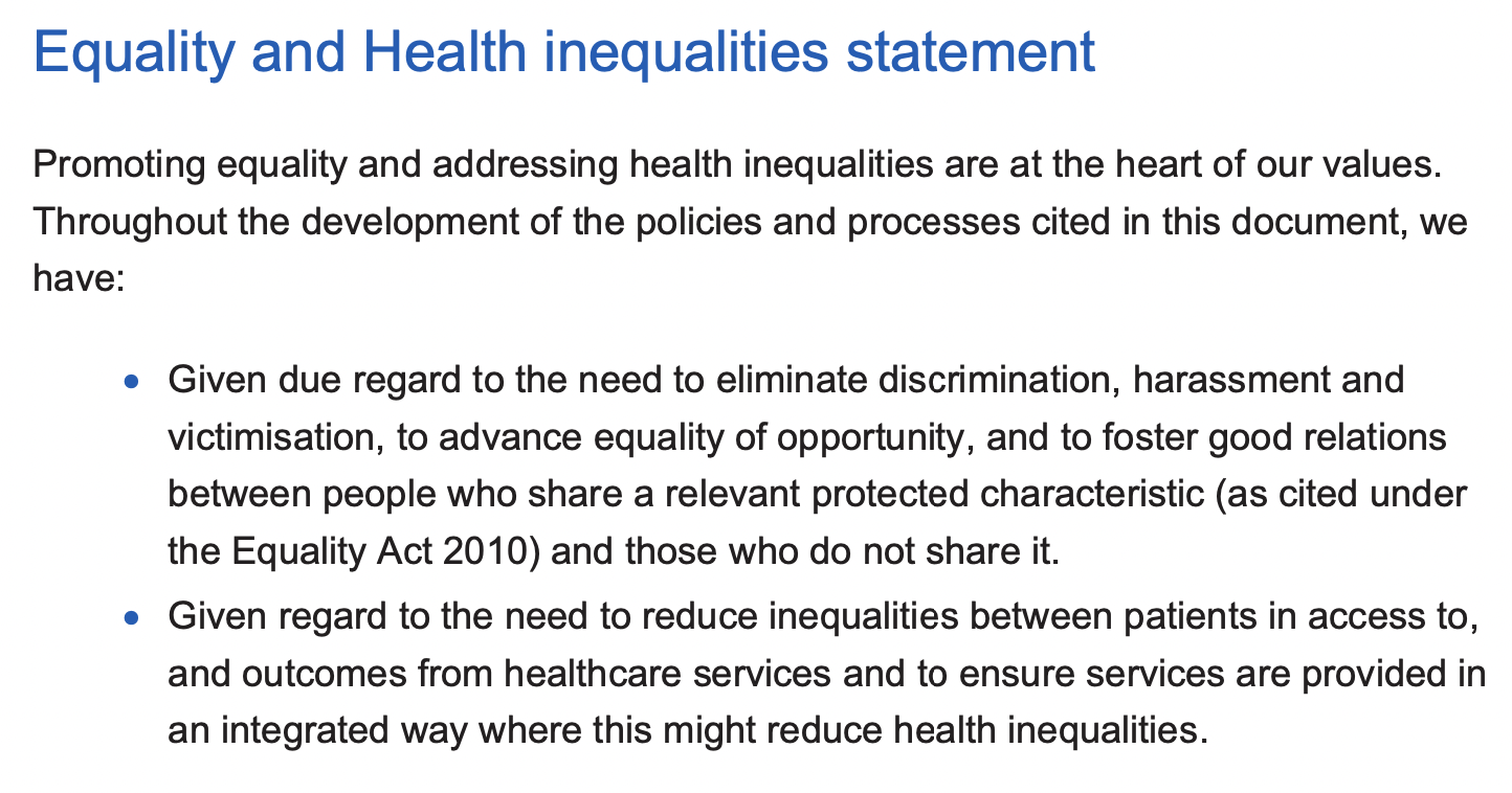 The supporting information document I mention above is prefaced by a standard NHS statement – see below.